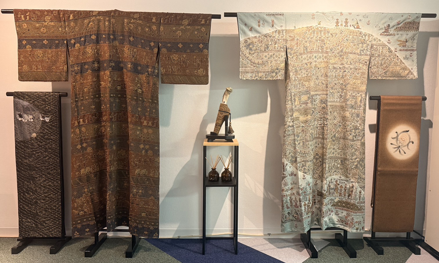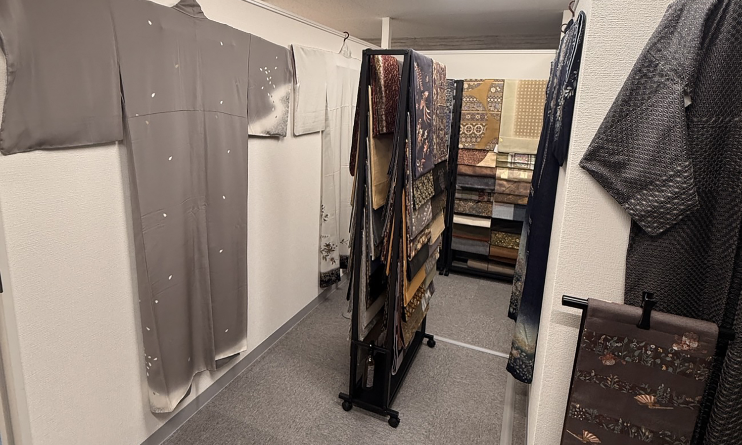 訪問着・付下・小紋・袋帯・名古屋帯、結城紬・牛首紬・大島紬・辻ヶ花・加賀友禅・汕頭刺繍など豊富な品揃えで、皆様をお迎えいたします。